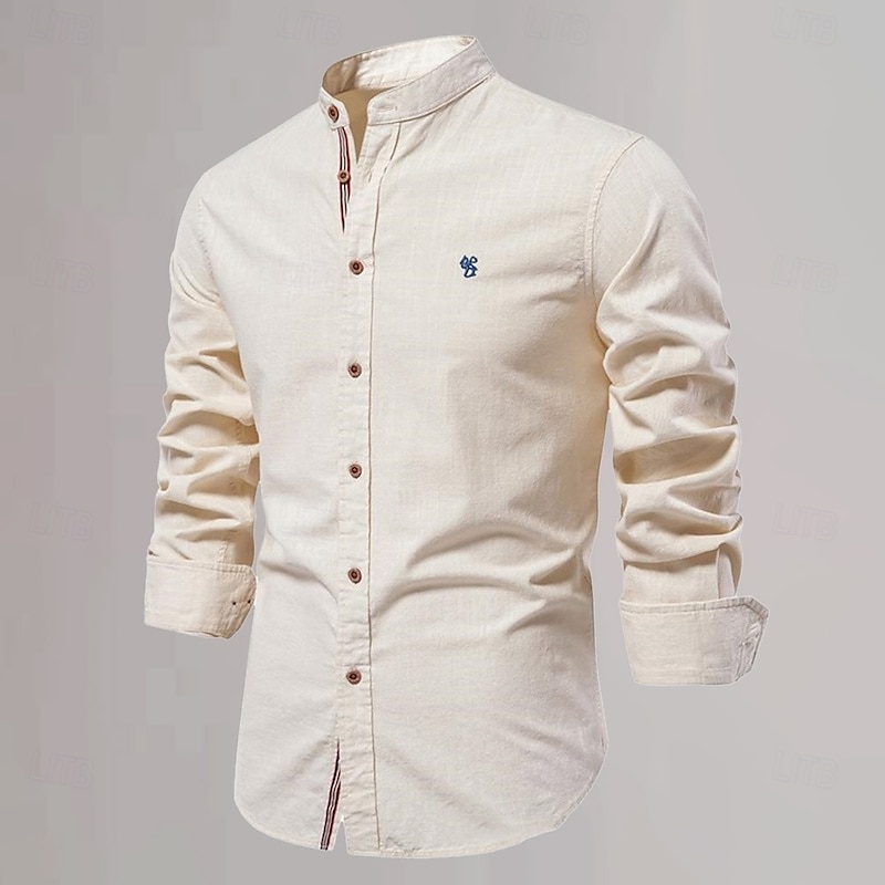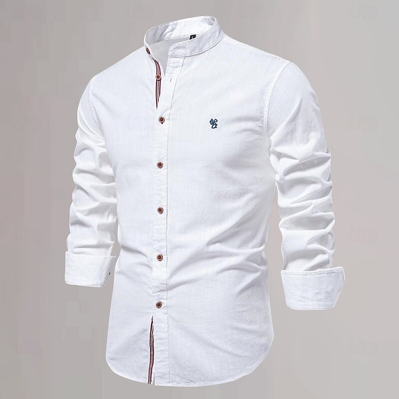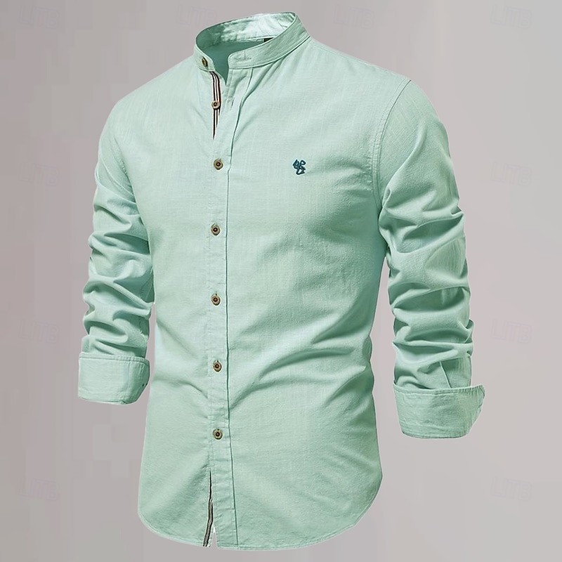 More information about Men's Chinese Collar Shirt Mandarin Collar Shirt Cotton Linen Shirt Plain Vacation Casual Daily Black White Light Green Dark Blue Long Sleeve Grandad Collar Clothing Apparel