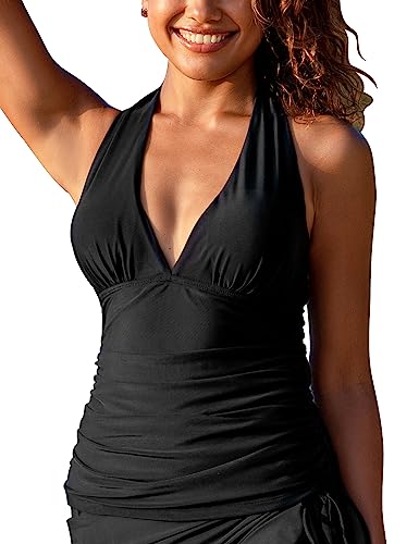 HOT ! Hilor Women's Tummy Control Tankini Top Swimsuit Plunging V Neck Top Swimwear Halter Bathing Suits Swim Tops