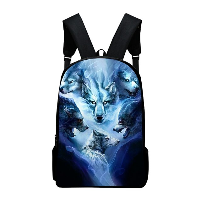 HOT ! Ice Blue Wolf Print Backpack for Teens – Stunning 3D Howling Wolf Galaxy Design School Bag for Boys and Girls