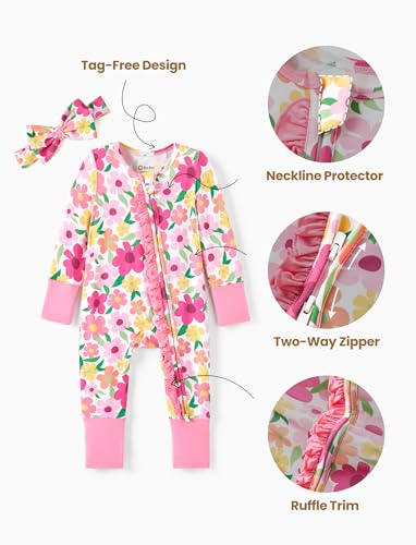• 🎀 Ruffle Trim, Cute Everyday Style: Sweet ruffle detail elevates this daily footie—easy to dress up for family photos, outings, and play, make your baby looks picture-ready in minutes.