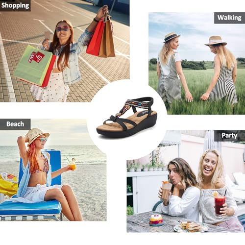 • Fashion Bohemian Sandals : Sandals for women 2025 . Women's wedge sandals with crystal-embellished floral decorations on the shoe surface, featuring elegant and sparkling flowers on this women sandals, elastic ankle bands are easy to wear and take off .Fashion women's sandals, Bohemian sandals are special in the summer . Wedge sandals with colorful bead chain decoration, show a robust Bohemian style, this summer sandals can become the focus of attention whether on vacation or daily wear.