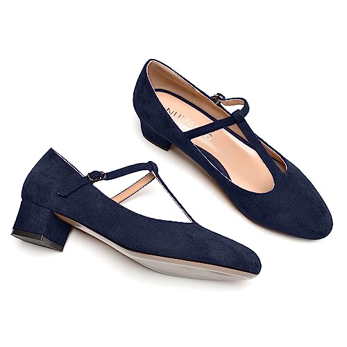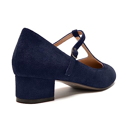 NUMALEO Womens Style Cute Suede T Strap Buckle Party Round Toe Chunky Low Heel Pumps Shoes 1.5 Inch 1