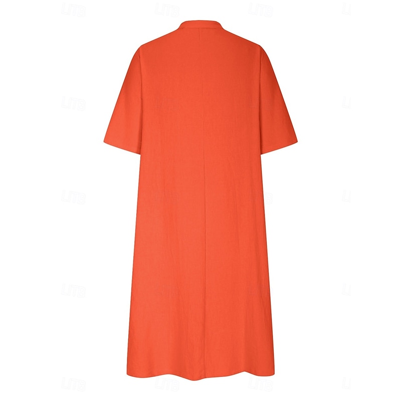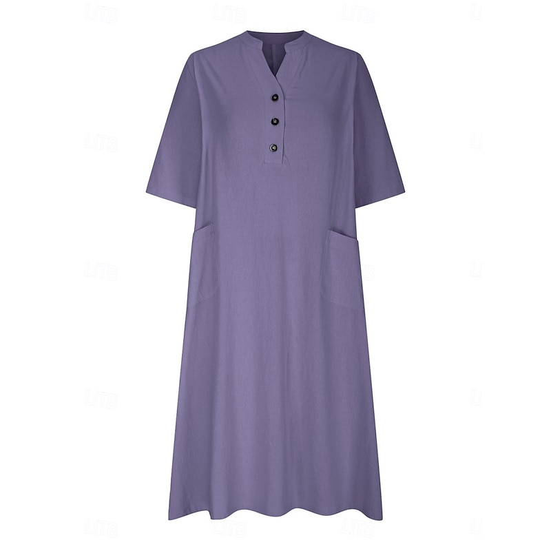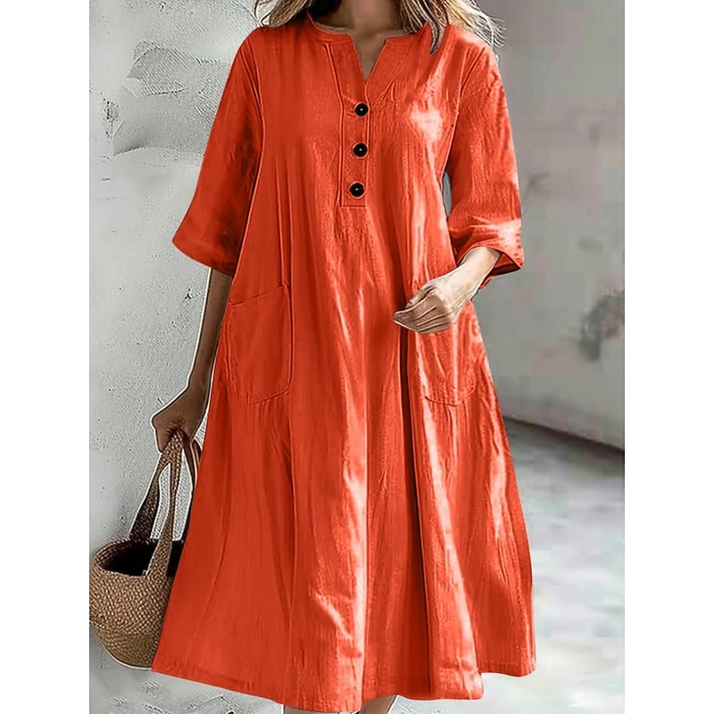 $28.99 - Women's Midi Dress Casual Dress Cotton Linen Dress A Line Dress Summer Dress Solid Color Basic Casual Vacation Daily Regular Fit Graphic 3/4 Length Sleeve Notched Neck Black Blue Purple Orange Summer 2025. Shop for cheap Plain Dress online? Buy at lightinthebox.com on sale today!