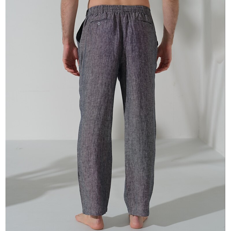 More information about Men's 100% Linen Pants Trousers Casual Pants Drawstring Elastic Waist Straight Leg Plain Comfort Breathable Casual Daily Holiday Fashion Classic Style Navy Blue Blue