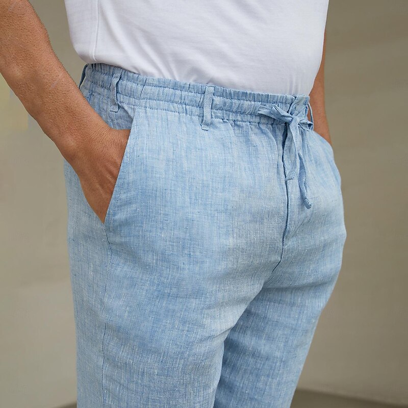 $31.99 - Men's 100% Linen Pants Trousers Casual Pants Drawstring Elastic Waist Straight Leg Plain Comfort Breathable Casual Daily Holiday Fashion Classic Style Navy Blue Blue 2025. Shop for cheap Men's Elite Pants online? Buy at lightinthebox.com on sale today!