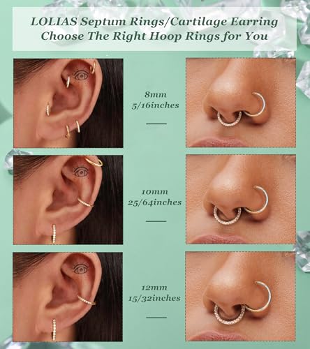 LOLIAS Septum Rings 16G 18G Surgical Steel Nose Rings Hoops for Women Seamless Clicker Hinged Segment Hoop Lip Nose Rings Conch Lip Helix Cartilage Earring Septum Jewelry Lip Nose Daith Hlix Piercing Jewelry 8MM 10MM 12MM