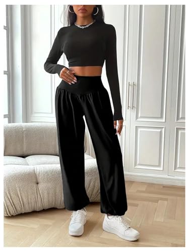 SOLY HUX Women's High Waisted Yoga Pants Wide Leg Sweatpants Workout Dance Joggers 2