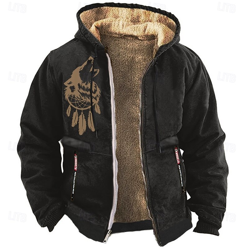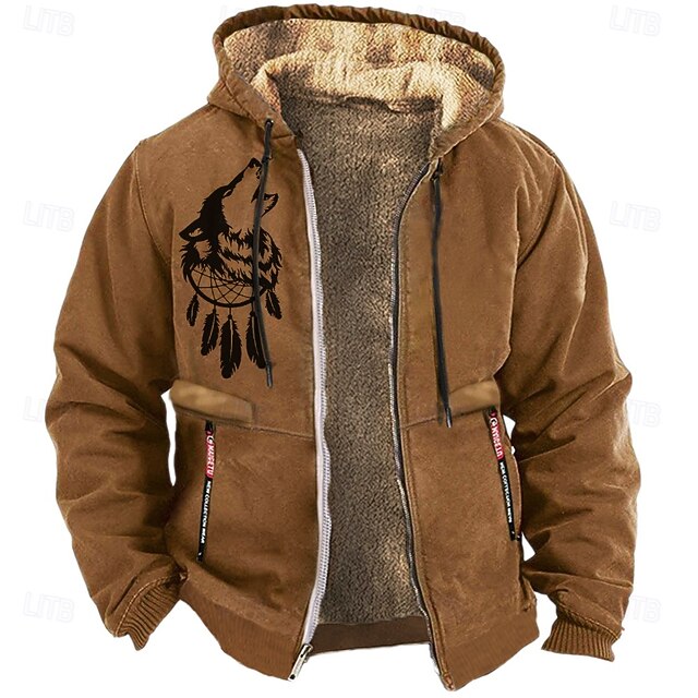 More information about Men's Wolf Fleece Hoodies Long Sleeve Sweatshirts Hooded Daily Hunting Fall Winter Black Blue Brown Clothing Apparel Designer Graphic Print S M L XL XXL XXXL