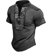 Highlights Thrilled to present our limited edition Men's T-shirt Tee Henley in a collaboration with The Laundry Room! This unique piece features an elegant stand collar short sleeves and a lace-up color-block design Rendered in summer-friendly polyester it boasts a stylish graphic print Exclusive to you each tee is made with a micro-elastic material for a relaxed fit Perfect for sports daily wear or casual outings and requires low maintenance with easy wet and dry cleaning