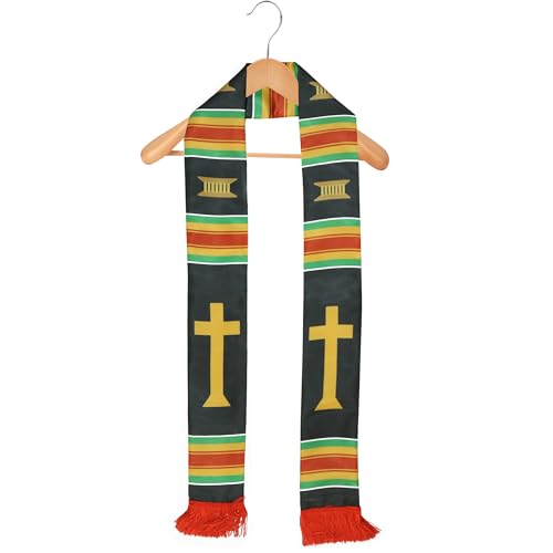 Black Grads Scarf African American Christian Graduation Stole Scarf with Red Tassels 7