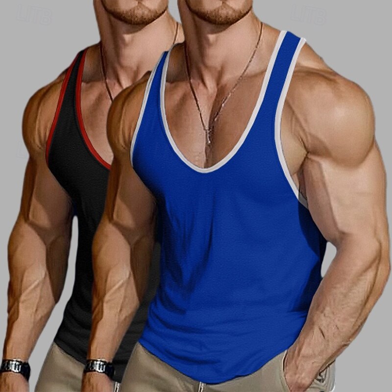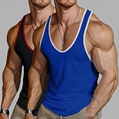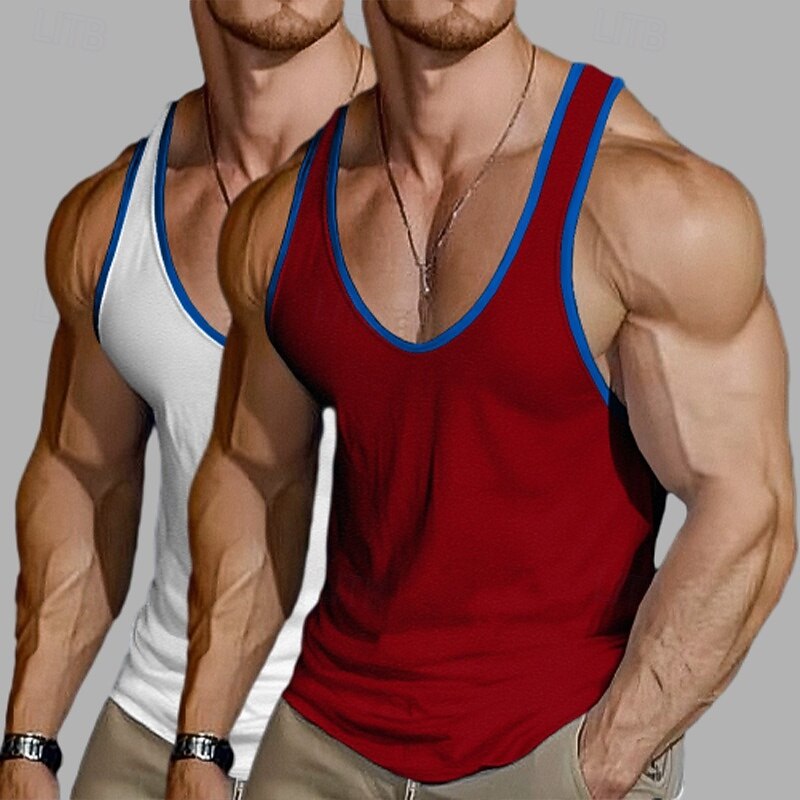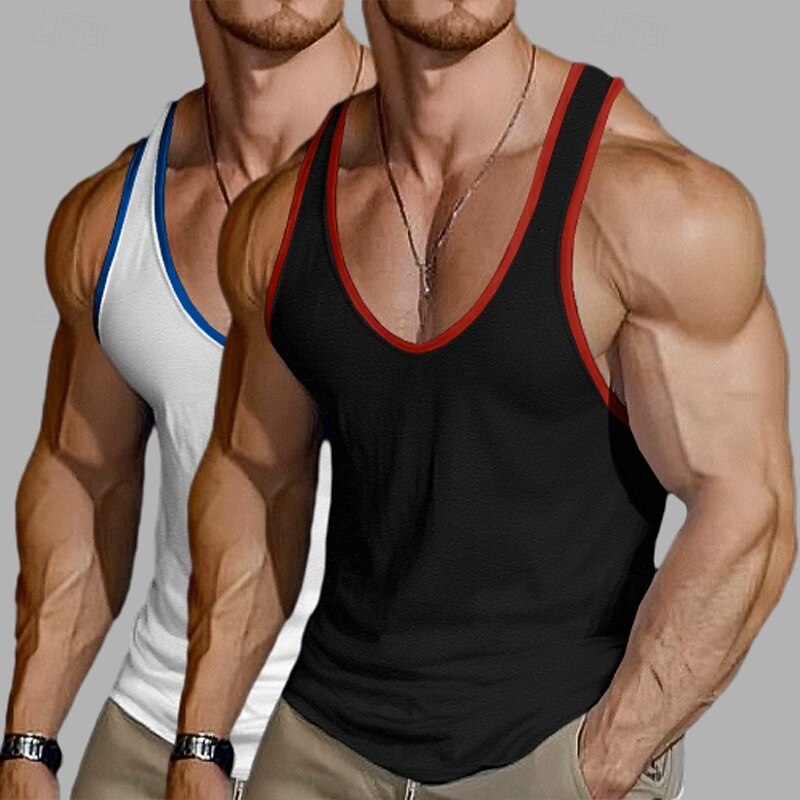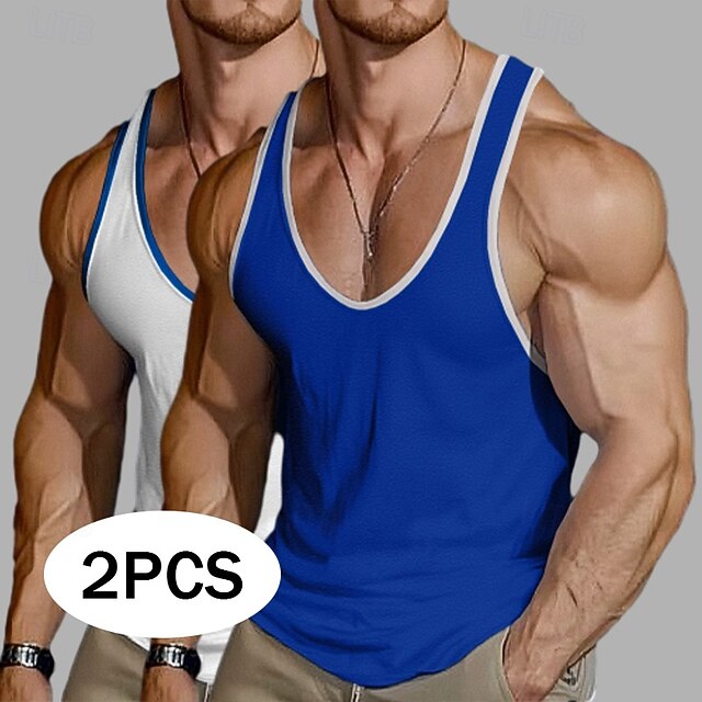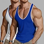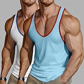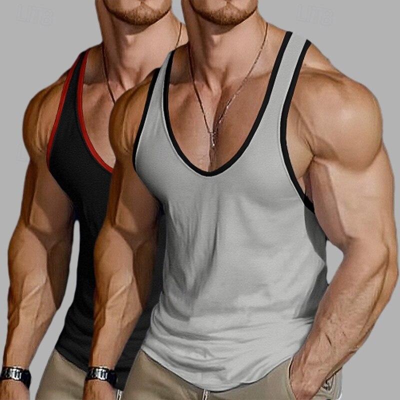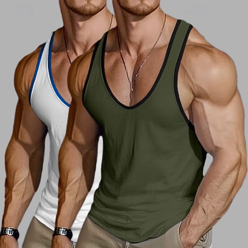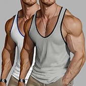 More information about Men's Tank Top Vest Undershirt Sleeveless Shirt Sleeveless Deep V Scoop Neck Summer Color Block Plain Fashion Sporty Classic 2 Pack Street Casual Sports Green & White Gray+White Black+Gray Top Tee
