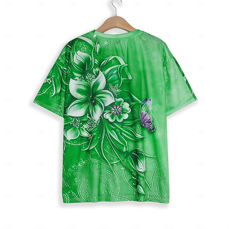 Highlights [Fabric]: Made from a blend of polyester, this T-shirt offers a micro-elastic quality, ensuring both comfort and durability. The fabric is soft and breathable, making it perfect for the warm summer months. [Silhouette]: Designed in a regular fit, this T-shirt provides a relaxed yet flattering silhouette. Its classic round neck and short sleeves make it a versatile addition to any wardrobe, suitable for easy pairing with jeans or shorts. [Design Highlights]: The T-shirt boasts a vibrant floral and butterfly print that adds a touch of nature-inspired artistry to your ensemble. Its rich colors and intricate 3D print design make it a standout piece, perfect for those who appreciate unique and expressive fashion. [Occasions]: Ideal for vacations, weekend outings, or casual gatherings. This T-shirt can effortlessly transition from a laid-back day out to a fun social occasion, offering both style and comfort for a variety of events. [Size Range]: Available in a wide range of sizes, from S to 5XL, ensuring a suitable fit for everyone. This inclusive sizing allows for a perfect fit no matter your shape, letting you enjoy the T-shirt's stylish design comfortably.