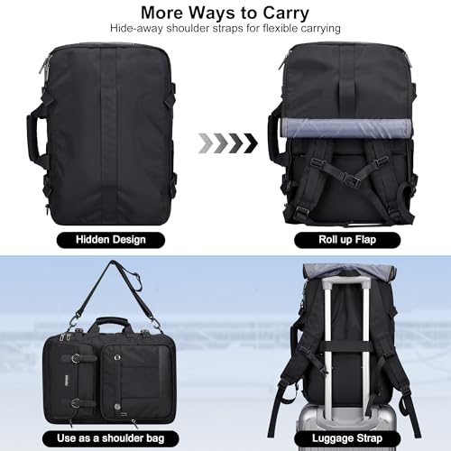 PIJUSHI Travel Backpack for Women Men Carry on Luggage Backpack Convertible Large Laptop Duffel Bag for Airplanes(PE049 Black) 6