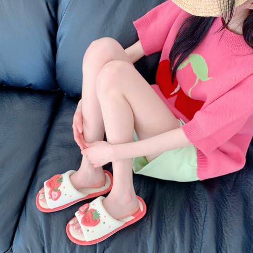 Strawberry Slippers Kawaii Indoor All-season Non-Slip Slides for Women Girl Linen Strawberry Stuff Cotton Shoes Home Gift 6