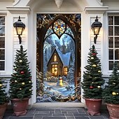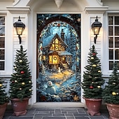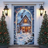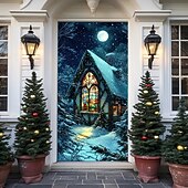 More information about Christmas Door Decorations Door Covers Xmas Santa Claus Village Door Tapestry Door Curtain Decoration Backdrop Indoor/Outdoor Door Banner for Front Door Farmhouse Holiday Party Decor Supplies