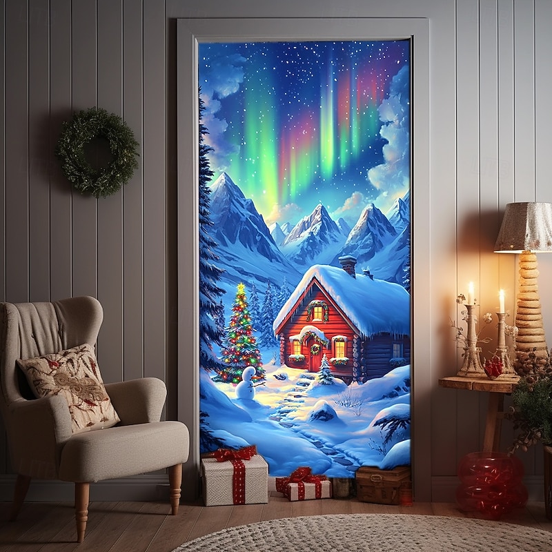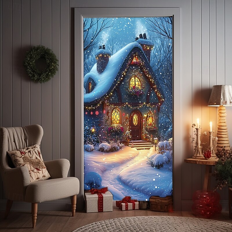 HOT ! Christmas Door Decorations Door Covers Xmas Santa Claus Village Door Tapestry Door Curtain Decoration Backdrop Indoor/Outdoor Door Banner for Front Door Farmhouse Holiday Party Decor Supplies