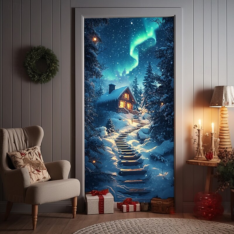 Christmas Door Decorations Door Covers Xmas Santa Claus Village Door Tapestry Door Curtain Decoration Backdrop Indoor/Outdoor Door Banner for Front Door Farmhouse Holiday Party Decor Supplies 11