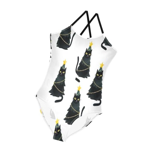 Black Cats Christmas Trees Girls One Piece Swimsuit, Beach Swim Suits Kids 3-10 Y with Adjustable Shoulder Strap, 3-10 Y 4
