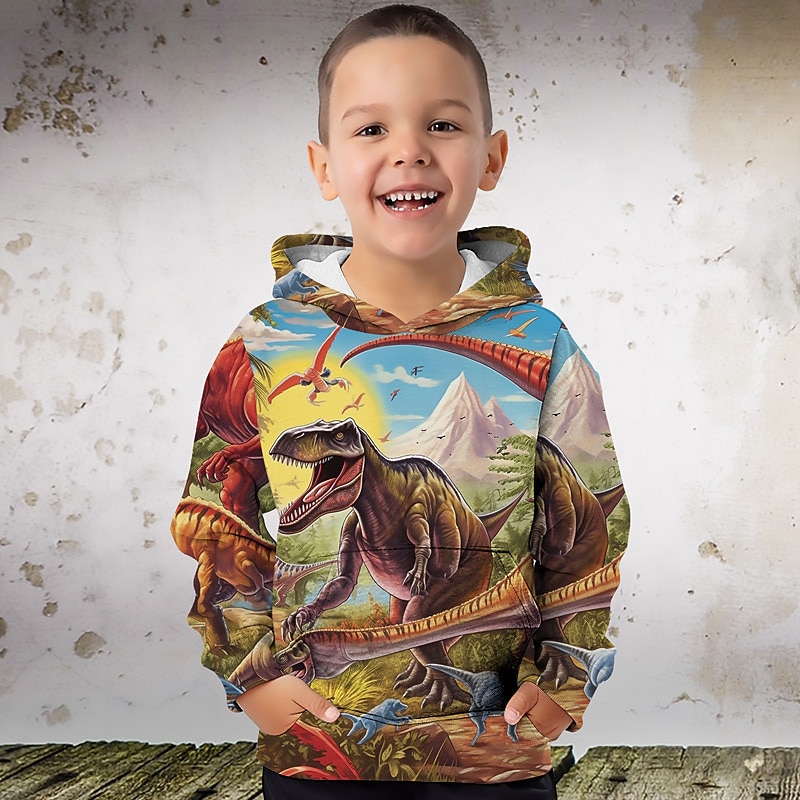 Why Choose Boys 3D Graphic Animal Dinosaur Hoodie Long Sleeve 3D Print Summer Spring Fall Sports Fashion Streetwear Kids 3-12 Years Outdoor Casual Daily Regular Fit?