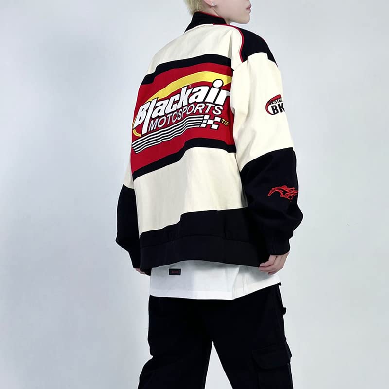 More information about Retro Racing Jacket Letterman Baseball Bomber Varsity Jacket Baggy Y2K Clothing Motor Biker Racer Jacket Techwear