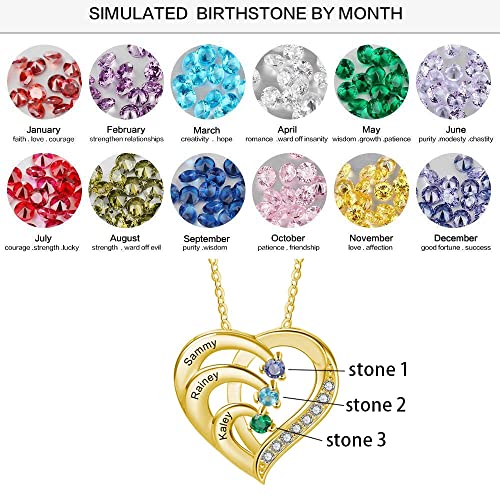 10K 14K 18K Gold Natural Diamonds and 2-5 Birthstones Heart Necklace for Women,Personalized Name Necklace Gift for Mom Gifts for Mother's Day(G-H Color, I2-I3 Clarity) 3