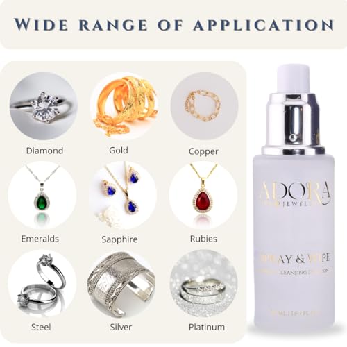 • 💎 Complete Jewelry Cleaning Kit – This 3-piece set includes Adora Fine Jewelry Cleaning Spray, a 6" x 7.5" premium polishing cloth, and a carrying pouch for easy storage. Designed to clean fine and fashion jewelry, restoring brilliance with ease.