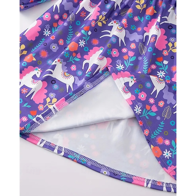 More information about Girls' 3D Graphic Unicorn Dress Long Sleeve Summer Spring Vacation Daily Holiday Beautiful Sweet Kids 4-12 Years Casual Dress A Line Dress Knee-length Regular Fit