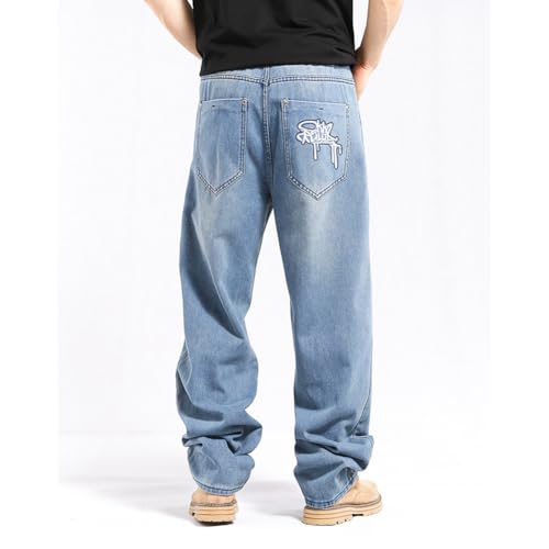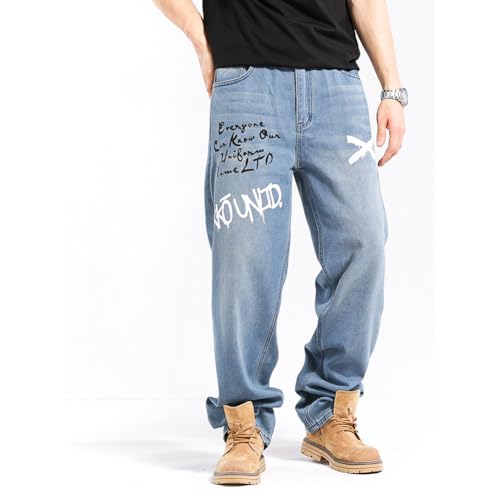 More information about Mens Streetwear Hip Hop Baggy Jeans Graffiti Print Wide Leg Skater Denim Pants