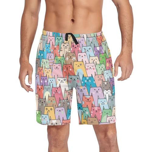 Colorful Cats Pattern Men's Pajama Pants Shorts Sleepwear Lounge Pajama Bottoms S-2XL 6