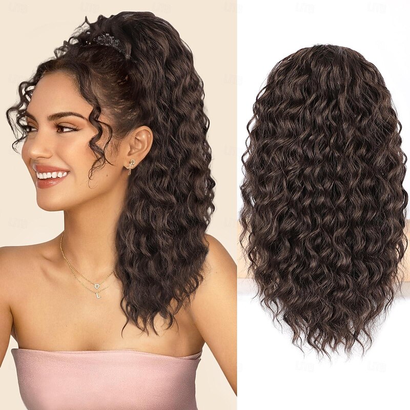 HOT ! Curly Ponytail Extension Drawstring Ponytail for Black Women Brown Black Curly Clip in Hair Extensions 18 Inch Ponytail Extension Synthetic Hairpiece for Daily Party