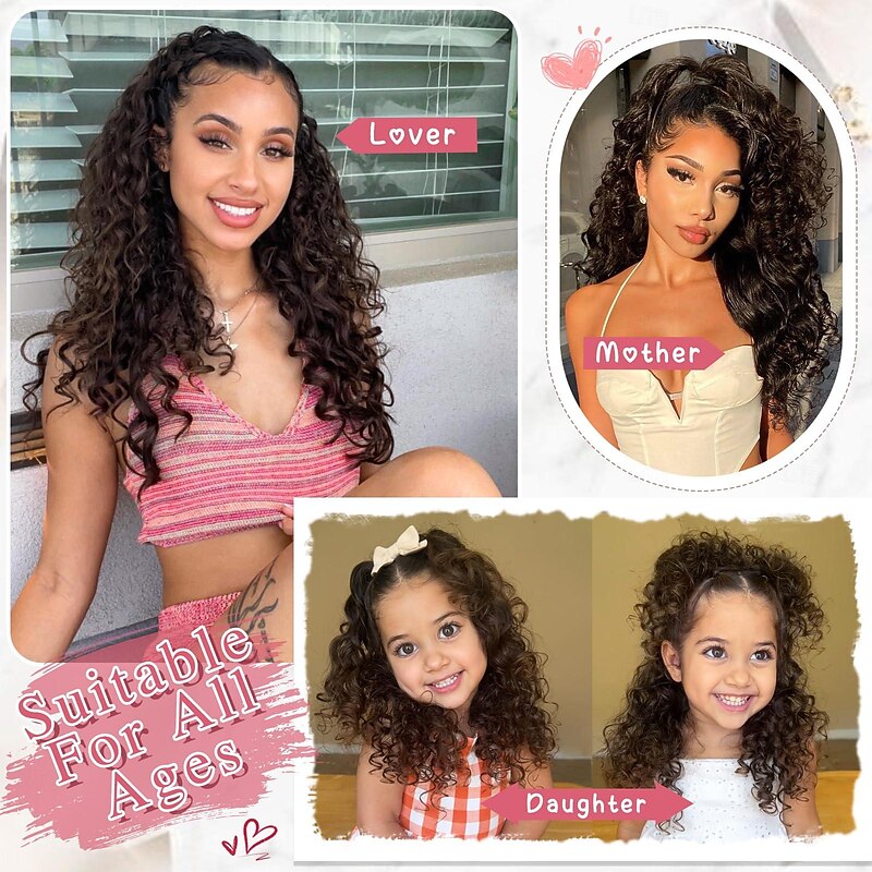 More information about Curly Ponytail Extension Drawstring Ponytail for Black Women Brown Black Curly Clip in Hair Extensions 18 Inch Ponytail Extension Synthetic Hairpiece for Daily Party