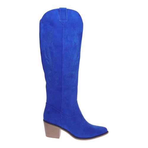Pierre Dumas Womens Cowboy Boots Pull On Zipper Chunky Heel Pointed Toe Embroidered Western Cowgirl Knee High Boots Girls Tall Boot 6