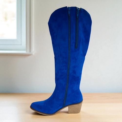 Pierre Dumas Womens Cowboy Boots Pull On Zipper Chunky Heel Pointed Toe Embroidered Western Cowgirl Knee High Boots Girls Tall Boot 5