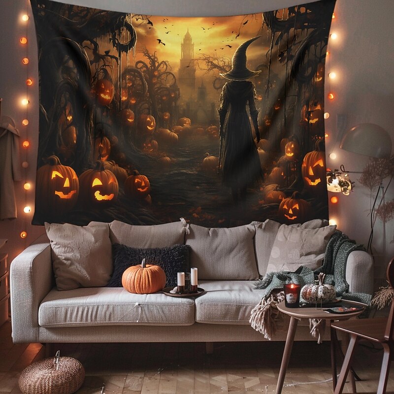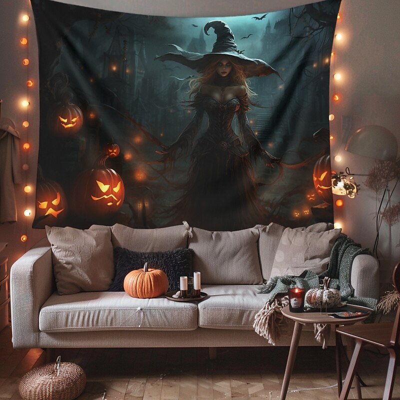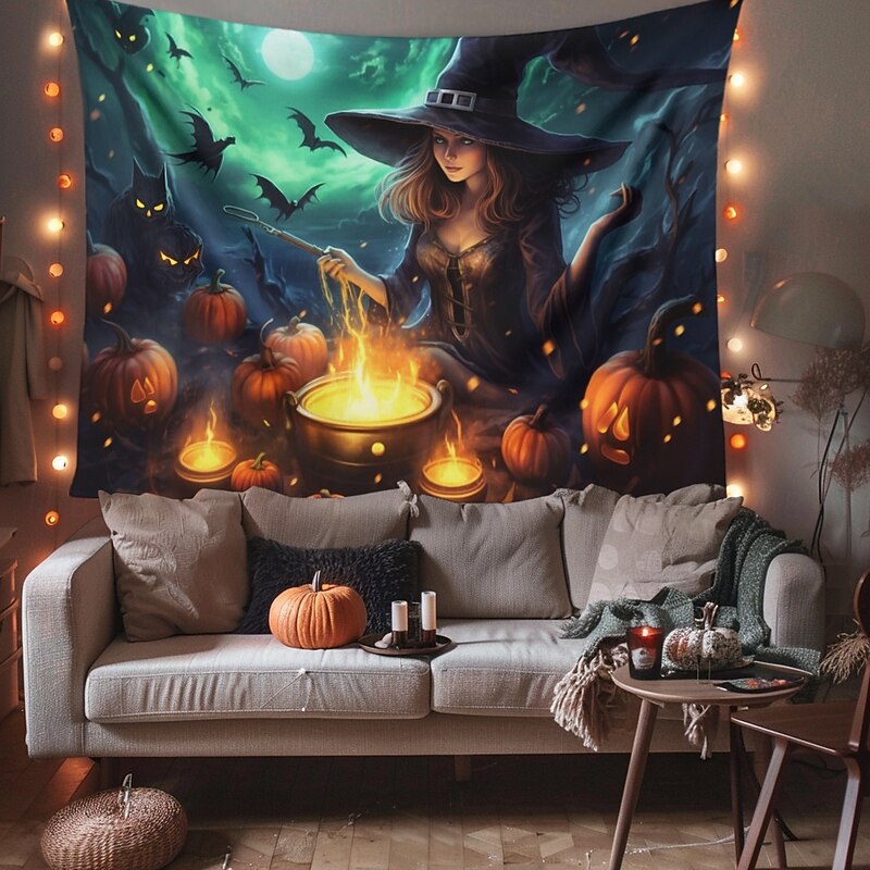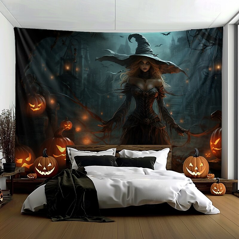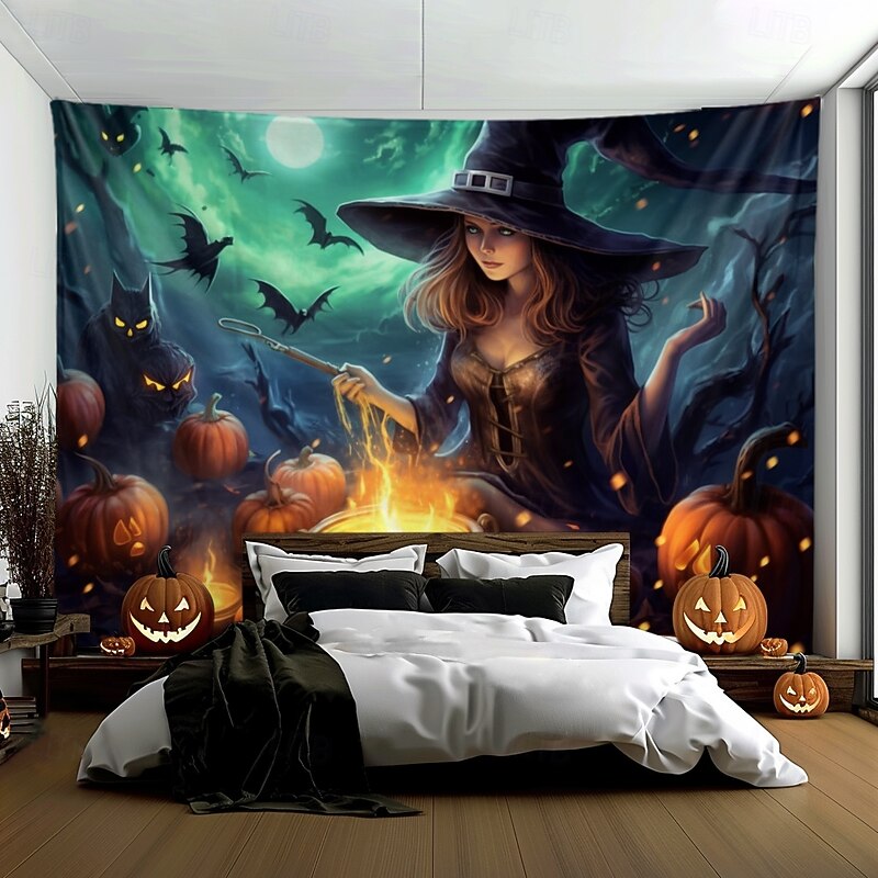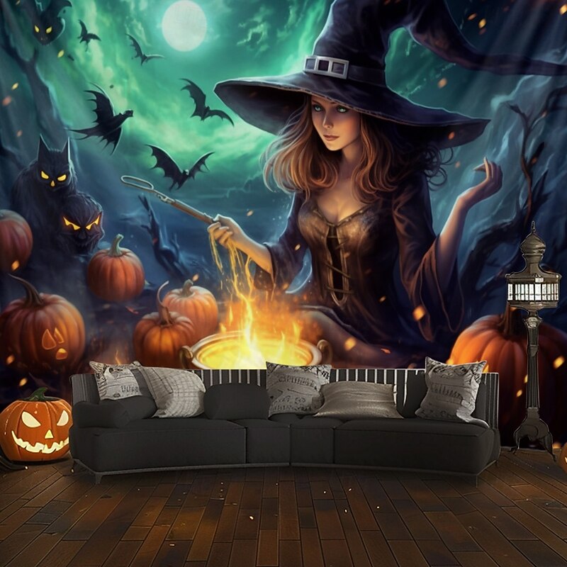 HOT ! Halloween Decorations Witch Hanging Tapestry Wall Art Large Tapestry Mural Decor Photograph Backdrop Blanket Curtain Home Bedroom Living Room Decoration