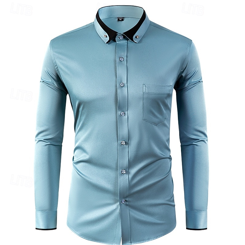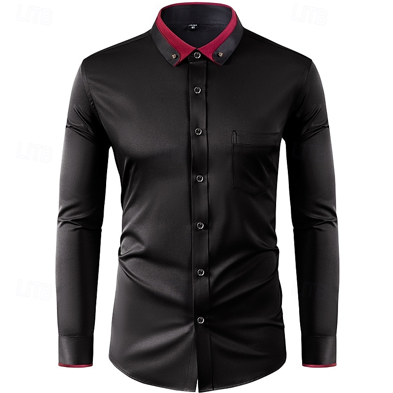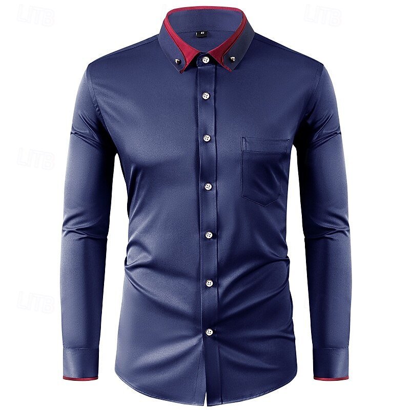 More information about Men's Shirt Dress Shirt Button Down Shirt Non Iron Shirt Plain Formal Wedding Black White Wine Navy Blue Long Sleeve Turndown Summer Spring Clothing Apparel uncut diamond