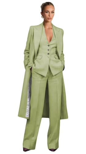 More information about Linen Suits for Women 3 Piece V Neck Womens Suit Casual Street Shoot Long Blazer Vest Pants Tuxedo Casual Pant Suit