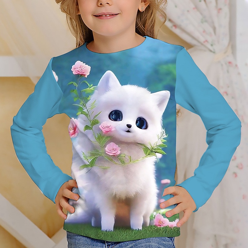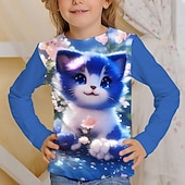 More information about Girls' 3D Floral Cartoon Cat T shirt Tee Long Sleeve 3D Print Summer Fall Active Fashion Cute Kids 3-12 Years Outdoor Casual Daily Regular Fit