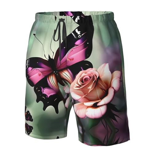 Flower Rose Butterfly Print Stylish Beach Shorts Swim Trunks Lightweight Breathable Summer Outdoor Activities 1
