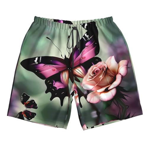 HOT ! Flower Rose Butterfly Print Stylish Beach Shorts Swim Trunks Lightweight Breathable Summer Outdoor Activities