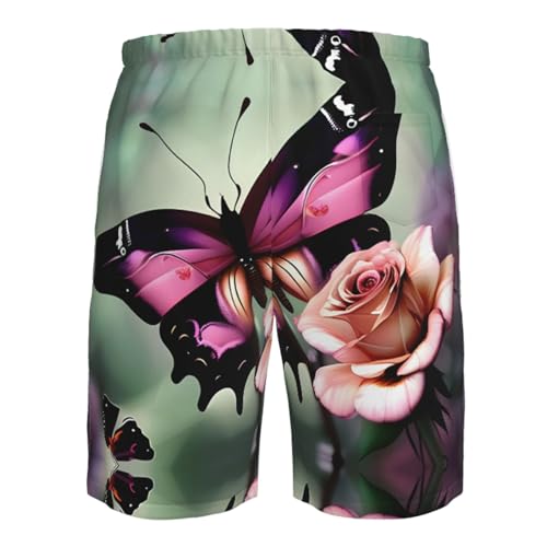 Flower Rose Butterfly Print Stylish Beach Shorts Swim Trunks Lightweight Breathable Summer Outdoor Activities 3