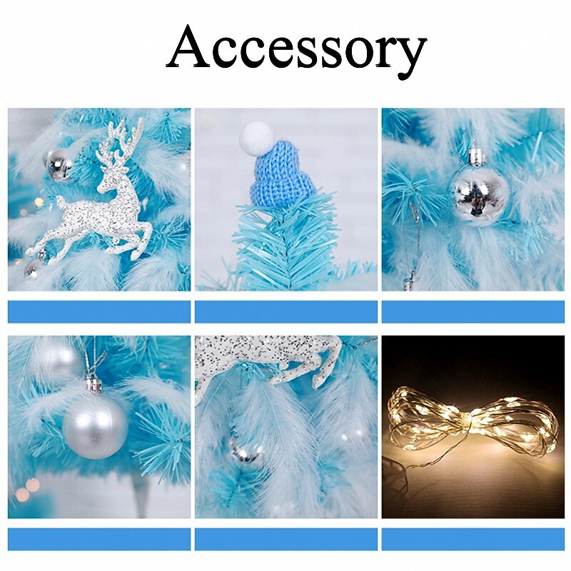 45CM Pink Feather Christmas Tree Set Blue Christmas Tree Decorative Ornaments Mini Christmas Tree New Year's Eve Decorative Desktop Decoration Holiday Creative Gift 11