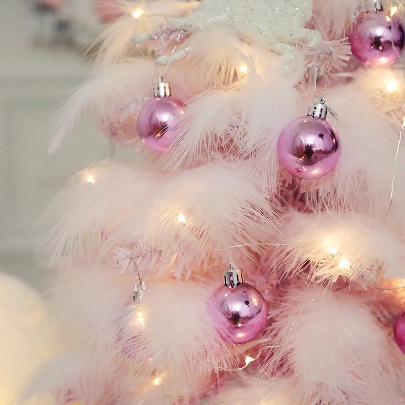 45CM Pink Feather Christmas Tree Set Blue Christmas Tree Decorative Ornaments Mini Christmas Tree New Year's Eve Decorative Desktop Decoration Holiday Creative Gift 7