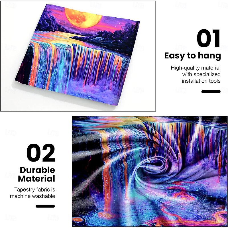 $15.49 - Full Moon Waterfall Blacklight Tapestry – Psychedelic Glow in the Dark Wall Hanging for Bedroom or Dorm Decor 2025. Shop for cheap Halloween Wall Tapestries online? Buy at lightinthebox.com on sale today!