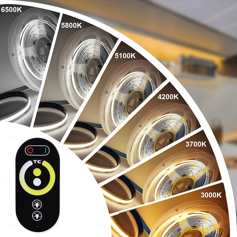 $129.99 - 24V CCT COB LED Strip Lights Kit 65.6ft (2 *32.8ft) 2700K-6500K Dimmable White Cuttable LED Tape Light CRI 93 with Remote Controller and Power Supply for Bedroom Indoor Decoration 2025. Shop for cheap Remote Control online? Buy at lightinthebox.com on sale today!