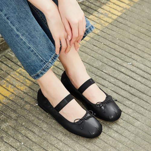 • Chic Design: The unique round toe and delicate bow add fashion and elegance to womens ballet flats, the simple and stylish design makes these Mary Jane flats easy to match with any outfit