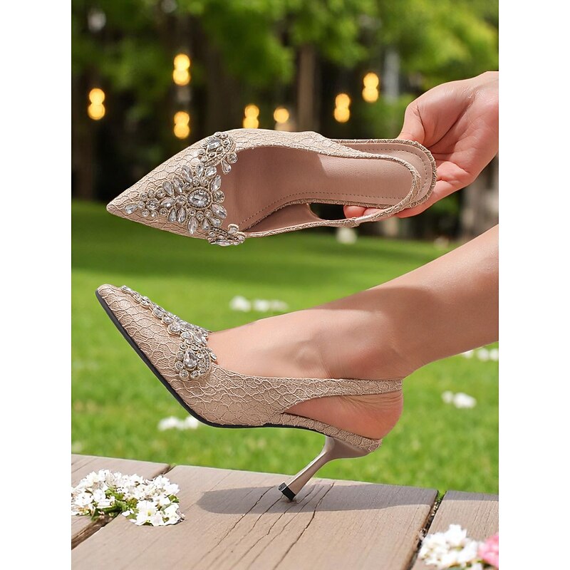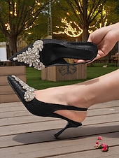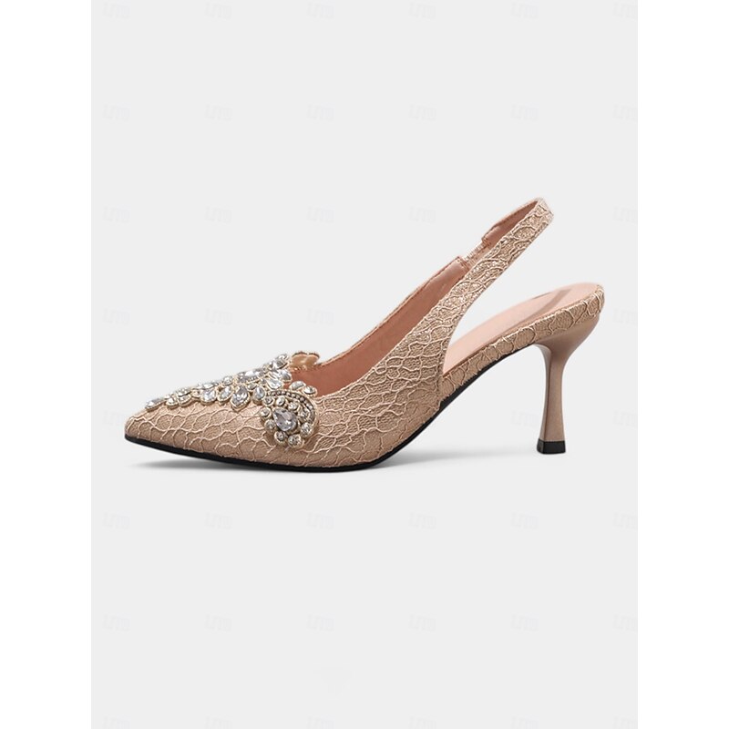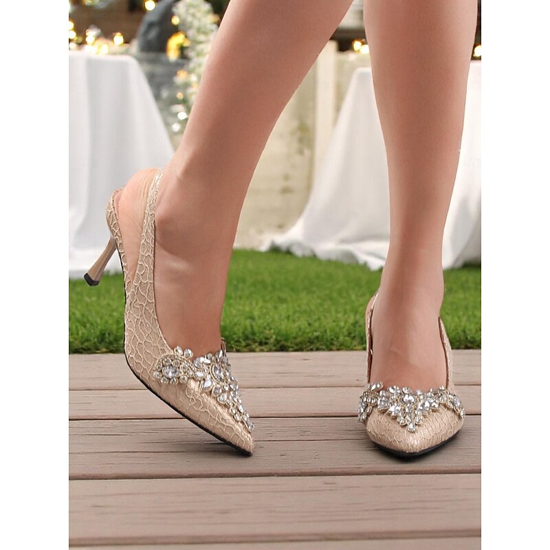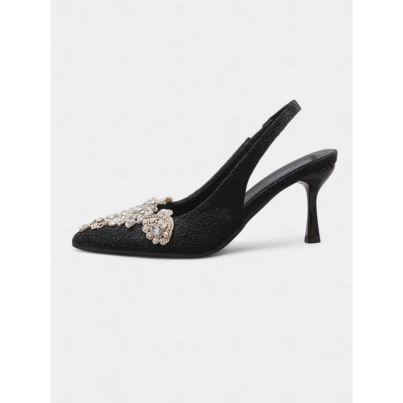 Highlights - Elegant lace upper material - Luxurious synthetic leather lining - Stunning rhinestone embellishments - Chic pointed toe shape - Durable rubber outsole