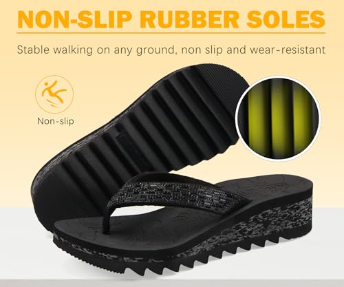 ONCAI Women's Wedge Flip Flops with Rhinestone,Recovery Dressy Walking Sandals for Women with Comfortable Arch Support Cushion Yoga Mat Summer Rubber Soles(US Size 5-11) 3