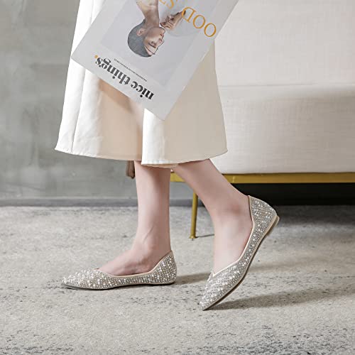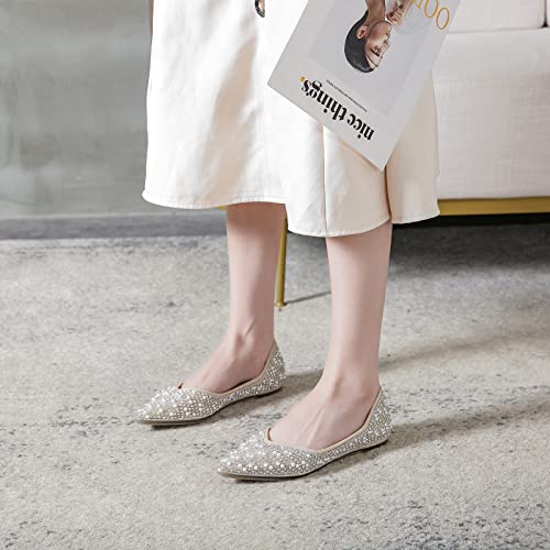 More information about ANUFER Women's Elegant Pointed Toe Rhinestones Pearls Beaded Flat Pumps Shoes Lightweight Slip On Ballerinas