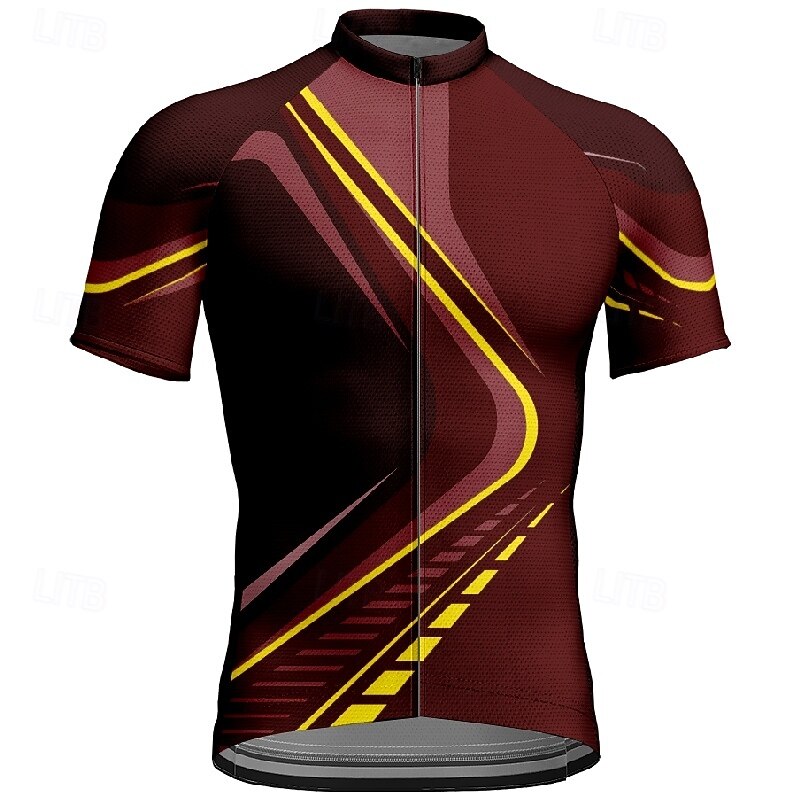 Men's Cycling Jersey Geometic Short Sleeve Bike Tee Tshirt Jersey with 3 Rear Pockets Mountain Bike MTB Quick Dry Anatomic Design Wicking Breathable Sports Burgundy Navy Blue Purple Clothing Apparel 17
