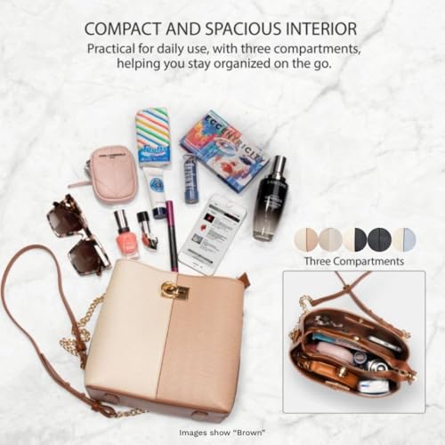 • 3 Spacious Compartments & 3 Closure Options - Measuring at just 7.87”W x 7.87”H x 3.93”D, our women's crossbody handbags are practical for everyday use but is also lightweight and comfortable. The interior boasts 3 compartments with a metal zipper for added security for your valuables, a magnetic closure for quick access to your daily essentials, and a chic, twist-lock in the front of the bag for easy storage of your mobile phone or other necessities. Stay well organized while on the move.